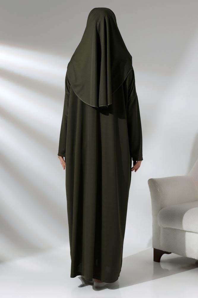 Abito da preghiera con borsa, pratico, foulard -khaki