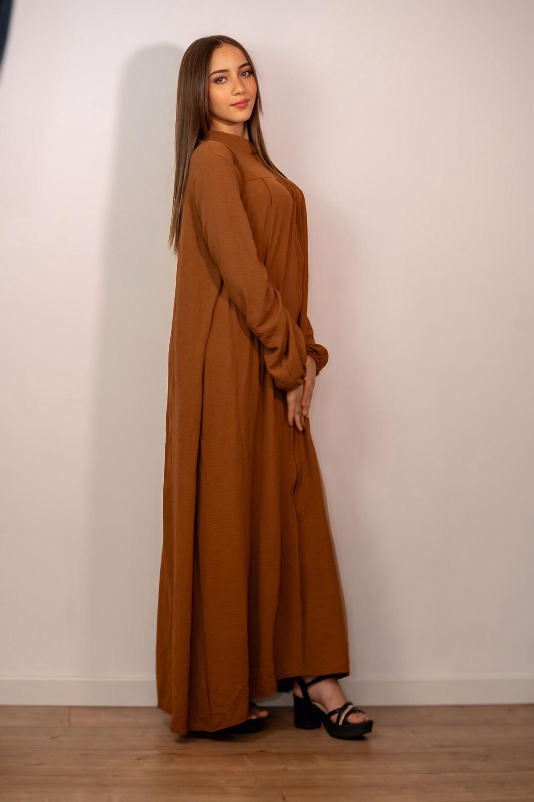 Questo vestito lungo, dal taglio comodo e fluido, è l’ideale per chi cerca uno stile modesto ma moderno.
